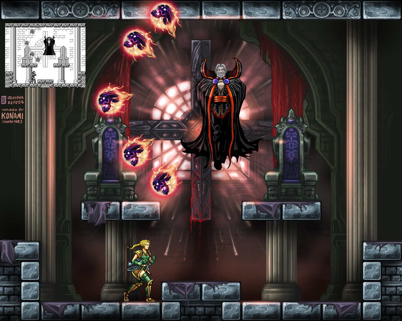 Art by Joshua Keyes – Characters and scene inspired by Castlevania, owned by Konami.